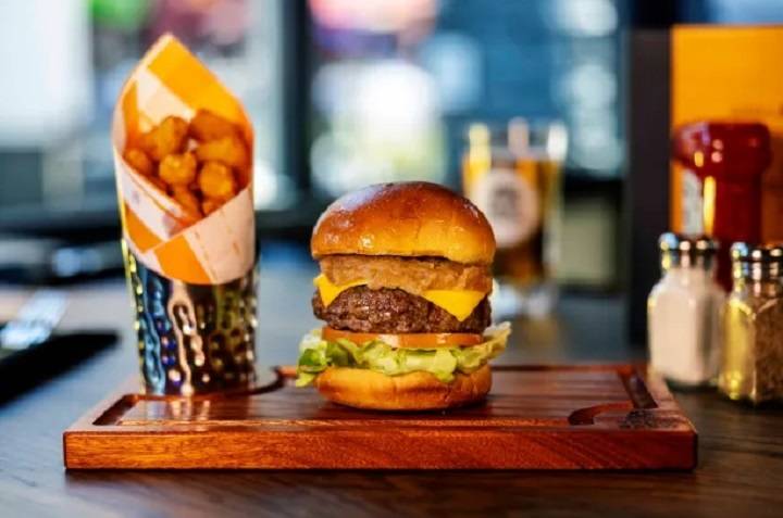 - NBC Signature Burger: A signature burger topped with cheddar cheese, bacon, lettuce, tomato, and onion, served with fries.